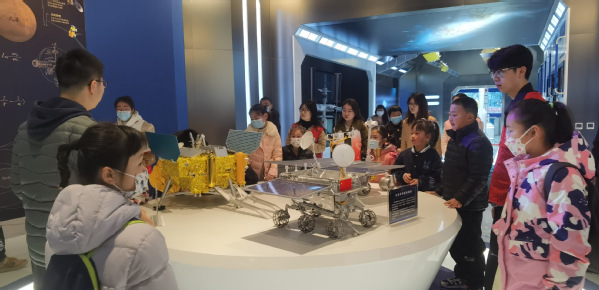 儿童们在青年志愿者的带领下依次参观了航天教育教学基地箭弹区、卫星区、飞船空间站区、深空探测区、未来区等,在丰富的科学展品和科普知识中,孩子们感受到中国航天的发展历程和科技的独特魅力。