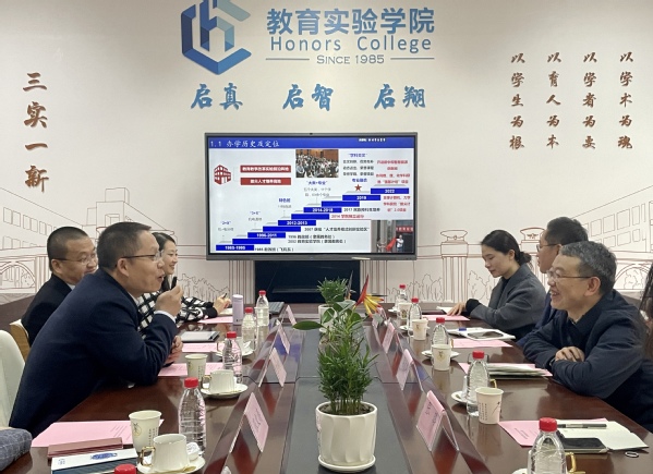座谈会上,张文涛对长空学院一行的到来表示热烈欢迎,蒋彦龙代表长空学院对教育实验学院的热情接待表示感谢,并介绍了长空学院拔尖人才培养新举措和“准书院制”建设新进展。他表示,两院长期以来保持着密切联系,建立了深厚友谊,希望此次交流为契机,进一步深化在人才培养、课程建设、社会实践等方面的合作交流,凝聚育人新共识,汇聚育人新合力。