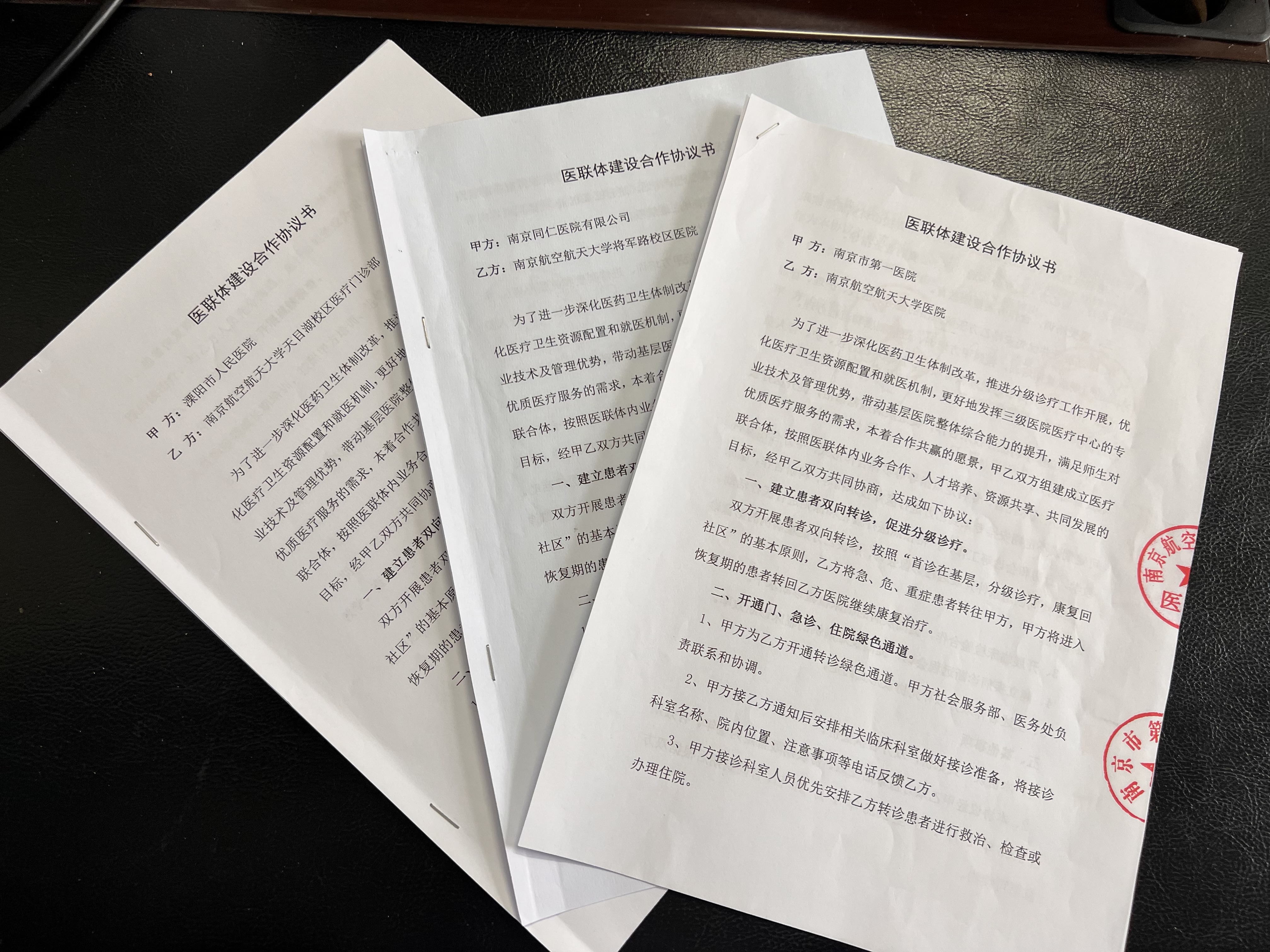 随着我校师生全面加入医保,为了进一步推进师生加入医保后分级诊疗工作开展,同时,优化医疗卫生资源配置和就医机制,借助社会三级医院医疗中心的专业技术及管理优势,带动校医院整体综合能力的提升,满足师生对优质医疗服务的需求,校医院通过精心谋划,积极推进校地医联体建设合作工作。经多方调研论证与主动对接沟通,根据医疗卫生属地化管理要求,在明故宫校区医院与南京市第一医院、将军路校区医院与南京同仁医院、天目湖校区医院与溧阳人民医院就“建立患者双向转诊、促进分级诊疗;开通门急诊、住院绿色通道;接受人员培训、合作开展继续教育;建立多学科医疗技术合作、促进疾病规范诊治、提升医疗技术及管理能力”等方面达成共识并分别签署了《医联体建设合作协议书》,为今后我校师生的转诊就医和带动校医院医疗技术水平以及整体综合能力提升奠定了良好的基础。