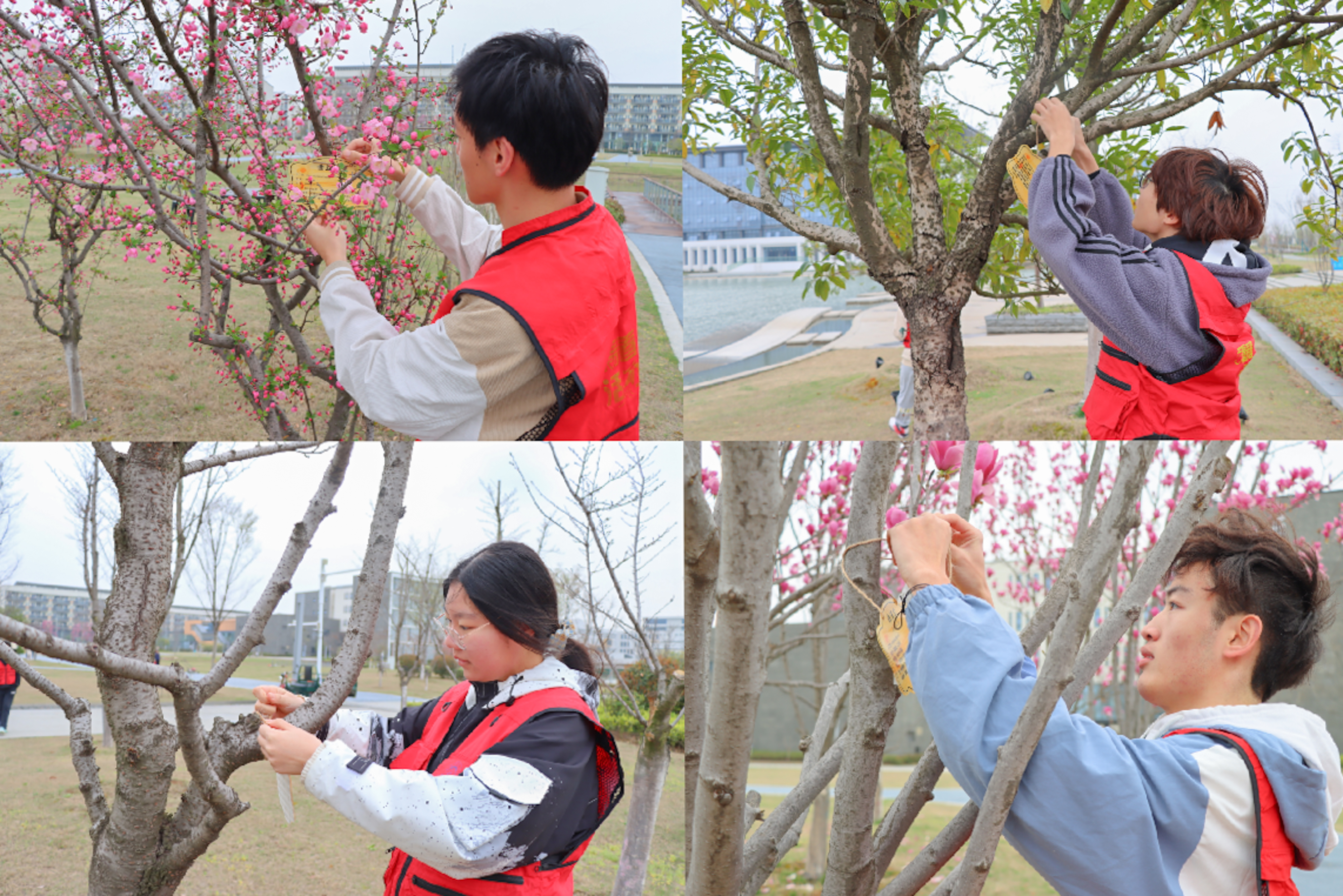 活动现场,计算机学院的同学们在校区园艺师邱金生的带领下学习了草坪机、绿篱机的操作方法,并为各类树木悬挂树牌,实现一树一“证”,为后续的管理养护奠定良好基础。