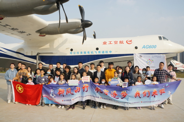 当“御风园”庞大的AG600飞机映入眼帘时,小朋友们发出了一阵阵的惊叹,在昂海松教授的带领下,近距离接触新中国自行生产的第一型飞机初教5、抗美援朝的米格-15战斗机、K-8基础教练机、我国自行设计制造的歼8和歼-8Ⅱ歼击机、全天候轻型多用途FC-1双座战斗机、大型水陆两用飞机AG600静力试验机、长征四号运载火箭、我校研制的大型无人靶机长空一号等19台大型航空航天器,了解每一台航空航天器背后的故事。小朋友们被一代代航空航天人为中国航空航天事业无私奉献的精神所打动,也点燃了航空航天的梦想。