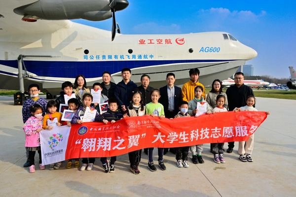 此次活动是中科协“翱翔之翼”科技志愿服务团重点打造的科技志愿服务,旨在以航空航天民航科普激发青少年探索精神,传承和发扬老一辈科学家的科技报国精神。五老村街道近20位外卖员等新兴群体青年子女、辖区居民子女,及学校教师子女在家长的陪伴下,来到南京航空航天大学航天教育教学基地、“御风园”航空航天教育教学实践基地参观。