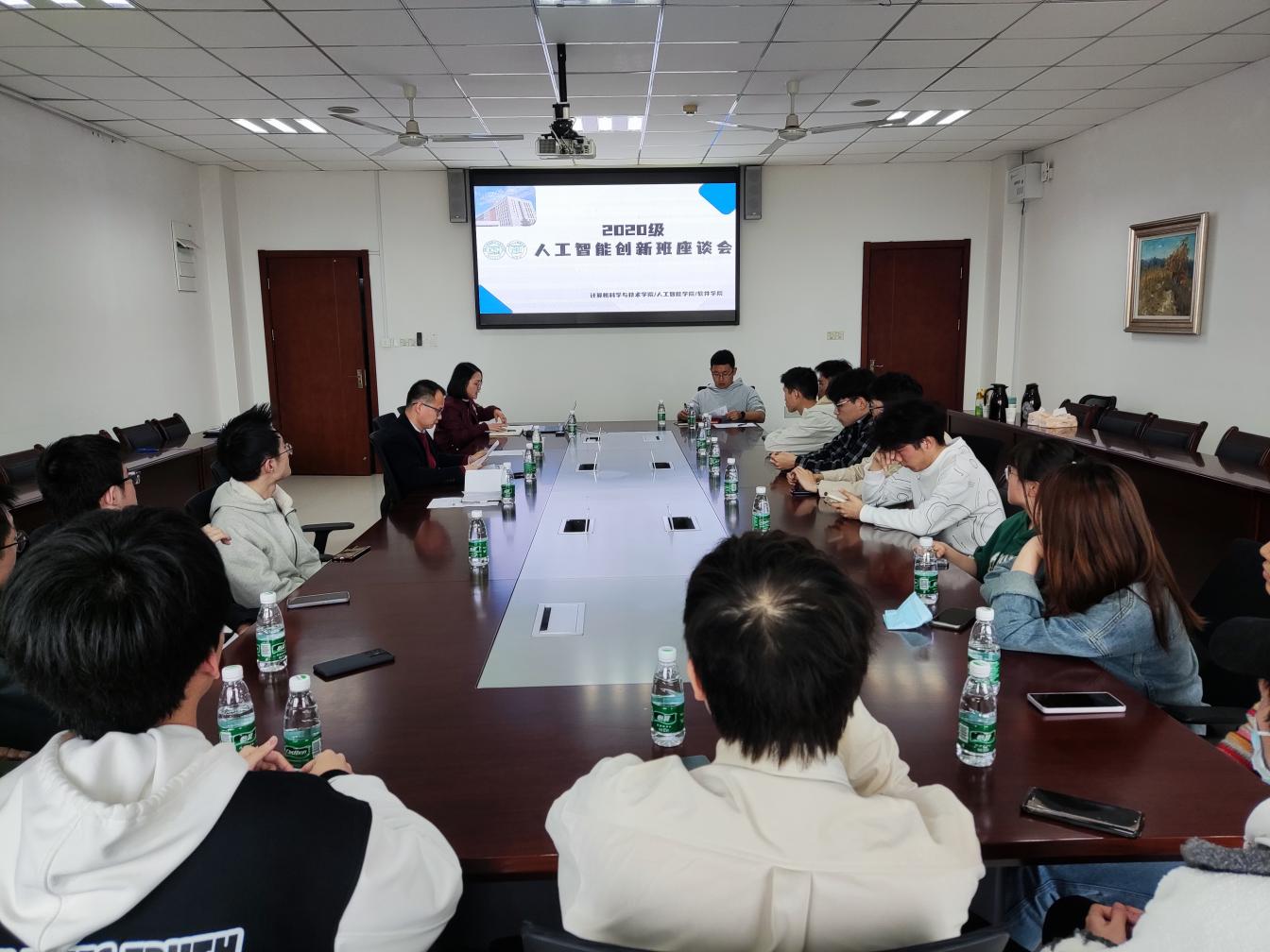 3月8日,计算机学院召开2020级人工智能创新班座谈会,计算机学院副院长李鑫、班主任顾晶晶、辅导员段仕伟以及教学办朱润泽参加交流。教学办主任林卉主持座谈。