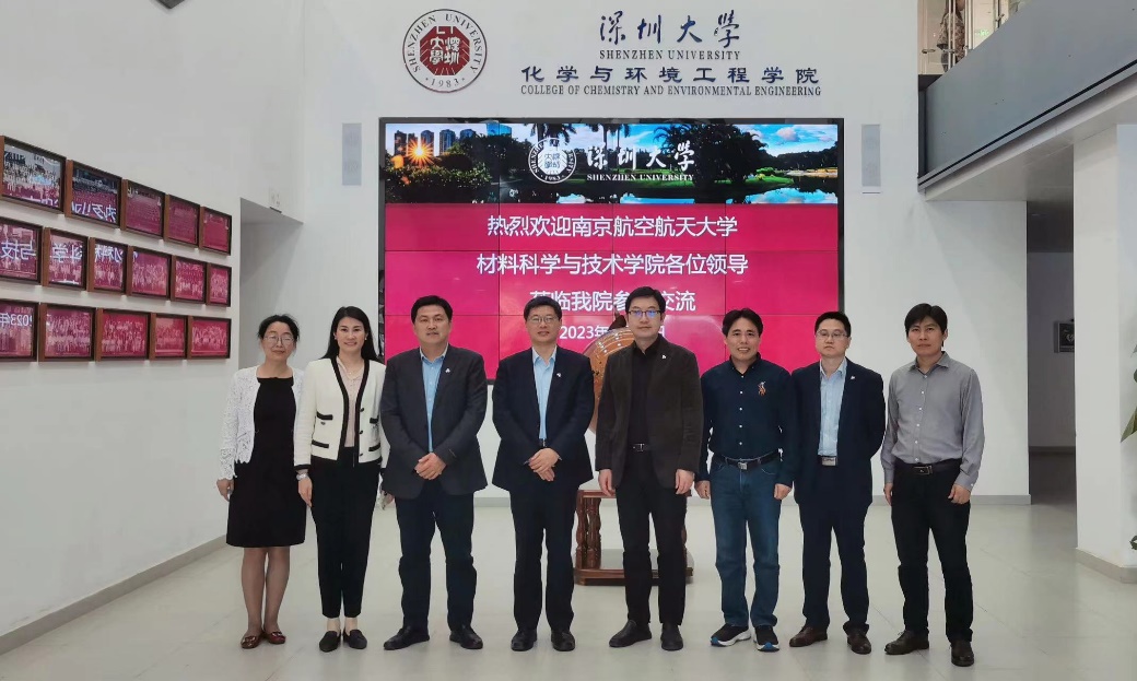 在深圳大学,学院一行与化学与环境工程学院领导班子围绕博士点申报工作、本科生人才培养和大学生思政教育等开展座谈,对方重点介绍了 “化学”博士学位授权点获批的经历及经验,并就如何完善申报材料,凝练学科方向与特色、突出师资队伍特色等方面提出了建设性意见。双方还就学科均衡发展、招生策略与宣传等方面进行了热烈地讨论和交流。