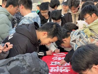 活动最后,现场师生纷纷在活动横幅上签下名字并合影留念,以实际行动为“雷锋精神”贡献青春力量。