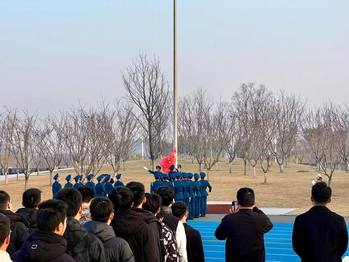 伴随着清晨第一缕阳光,升旗仪式正式开始。天目湖校区国旗班迈着整齐铿锵的步伐走向国旗台,全体师生在《义勇军进行曲》中注视五星红旗,奏唱国歌。学院青年志愿者协会学生代表、0422001班张镇麒进行本次志愿服务月的活动解读宣讲,学院将依托多年形成的品牌项目和校外基地,为同学们搭建各类志愿服务平台,丰富同学们的校内外志愿实践途径,利用学院专业特色在智慧助老、心理健康普及、社区服务、支教宣讲等方面多维度开展各类主题实践活动。