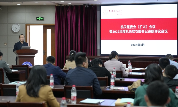 近日,机关党委会(扩大)会议暨2022年度机关党支部书记述职评议会议在明故宫校区综合楼11楼会议室召开。校党委副书记陶勇出席会议,全体机关党委委员、机关党支部书记及党务干事参加会议。会议由机关党委书记焦宏图主持。
