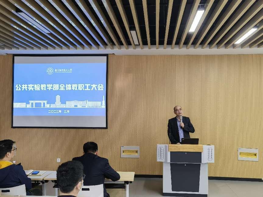 副主任徐锋、丁岚分别结合分管工作,从教学科研、实验室安全与运行等方面作专题工作汇报,并针对迎接本科教育教学审核评估、实验室建设等重点工作安排作详细部署。党政办主任邵恒博受大会委托作公共实验教学部2022年财务工作报告。