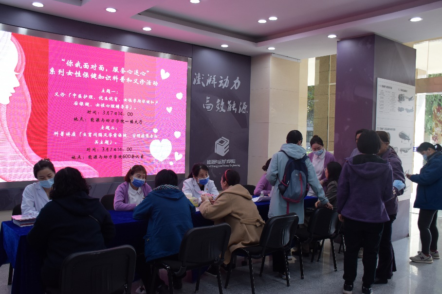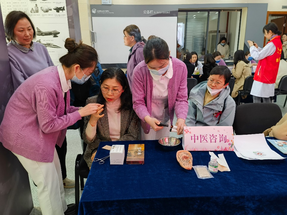 春光暖人心,春意盎满怀。为庆祝第 113 个“三八”国际劳动妇女节,丰富女教职工们的精神文化生活,提升女教职工校园幸福感,3月7日下午,“你我面对面,服务心连心”女性保健知识科普和义诊活动在明故宫校区A10号楼举行。此次活动由南京航空航天大学工会主办,能源与动力学院工会与南京市妇幼保健院联合承办。学校工会副主席谢瑶,能源与动力学院党委副书记、工会主席樊小杰和来自学校各部门各学院50余名女教职工参加了本次活动。