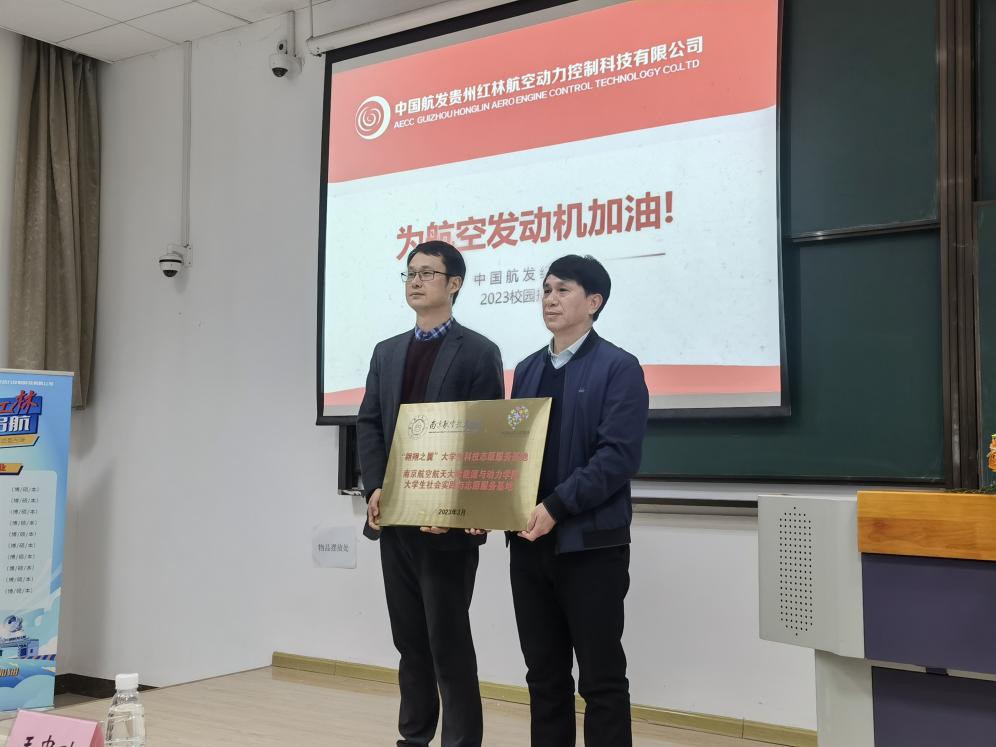 现场举行了中国科协“翱翔之翼”大学生科技志愿服务基地授牌仪式。中国航发贵州红林有限公司成为与我院共建的大学生科技志愿服务基地。