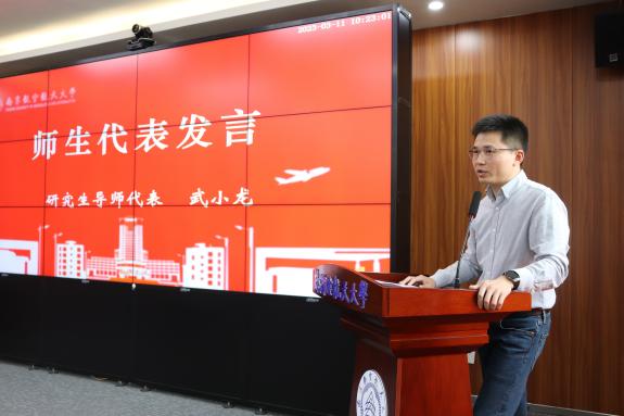 开班仪式上,人文与社会科学学院院长助理武小龙作为导师代表发言。他建议学员们要平衡好“多重身份”,增强主动学习意识,培养科学思维方式,提升学术研究能力。欧梦晴作为学员代表发言,她表达了自己对新的学习阶段的期待与决心,表示一定会把握学习机会,珍惜学习资源,充分利用南航提供的学习条件,潜心学习,学有所成。