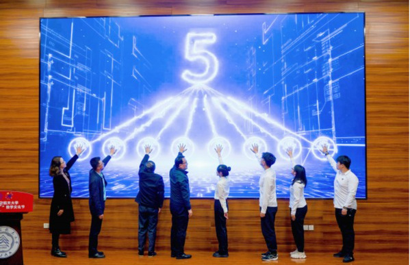 昂海松、赵铮、许静、王春武以及首届预、本、硕、博新生代表一同上台,在全场师生们热烈的掌声下,共同启动“π”数学文化节。
