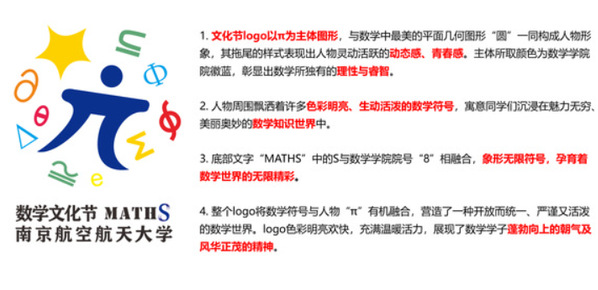 “π”数学文化节标识正式发布,该标识以π为主体图形,与数学中最美的平面几何图形“圆”一同构成人物形象,其周围飘洒着色彩明亮、生动活泼的数学符号,整个标识展现了开放统一、严谨又活泼的数学人物和数学世界。
