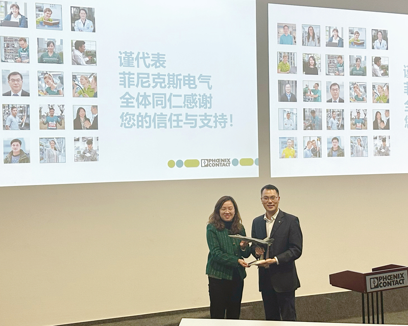 最后,胡苹对菲尼克斯的热情接待表示感谢,她指出共商校企合作、共促产教融合是贯彻科教兴国和人才强国战略的重要举措,也是促进毕业生高质量就业的重要渠道,今天的活动不止是一次企业参观交流,更是一堂生动鲜活的实践思政课,为拓宽学生眼界、丰富教育形式、深化教学改革都提供了难能可贵的机会和平台。学院也将进一步提升学生创新实践能力的培养,全面提升人才培养质量,期待校企双方能够多维度多元化进行协作,发挥各自优势,在更大范围、更广领域和更高层次开展全方位的合作,为学校“家门口”的企业输送更多可靠力量。
