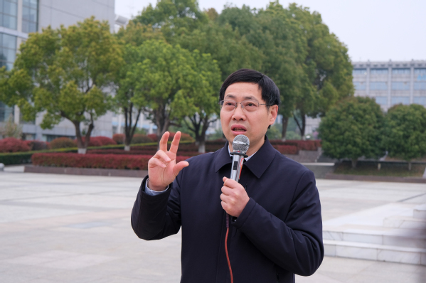 季海群在国旗下对青年学生寄予厚望,他引用党的二十大报告中“当代中国青年生逢其时,施展才干的舞台无比广阔,实现梦想的前景无比光明”的话语来激励学生,提出“学好专业,自立自强,提高站位”三点要求。