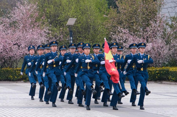 早上7点,朝阳当空,国旗班的队员们身着整齐的制服,迈着矫健的步伐,擎着鲜艳的五星红旗庄严入场。伴随着雄壮的《义勇军进行曲》奏起,五星红旗冉冉升起,全体师生肃立行注目礼,齐声高唱中华人民共和国国歌。