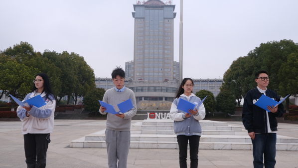 学生党员代表在国旗下朗诵了《信息领航,强国有我》的诗歌。四院学子们钻研专业知识,心系祖国发展,共同高呼“经纬天地,慧通时空,信息领航,我们一直在路上!”