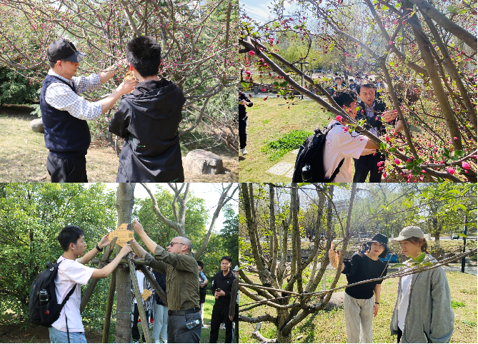 活动伊始,校区党工委机关党支部党员王建学现场为师生介绍了紫叶李、木芙蓉、香樟树等校园常见树种,师生共同为它们挂上铭牌,添上“新衣”。