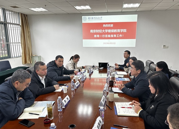 3月22日下午,南京财经大学继续教育学院院长林振洲一行来我校继续教育学院对自考助学办学情况进行调研。继续教育学院院长王伟、副院长赵宇、党委副书记尹春苹以及相关科室负责人参加了调研座谈会。会议由王伟主持。