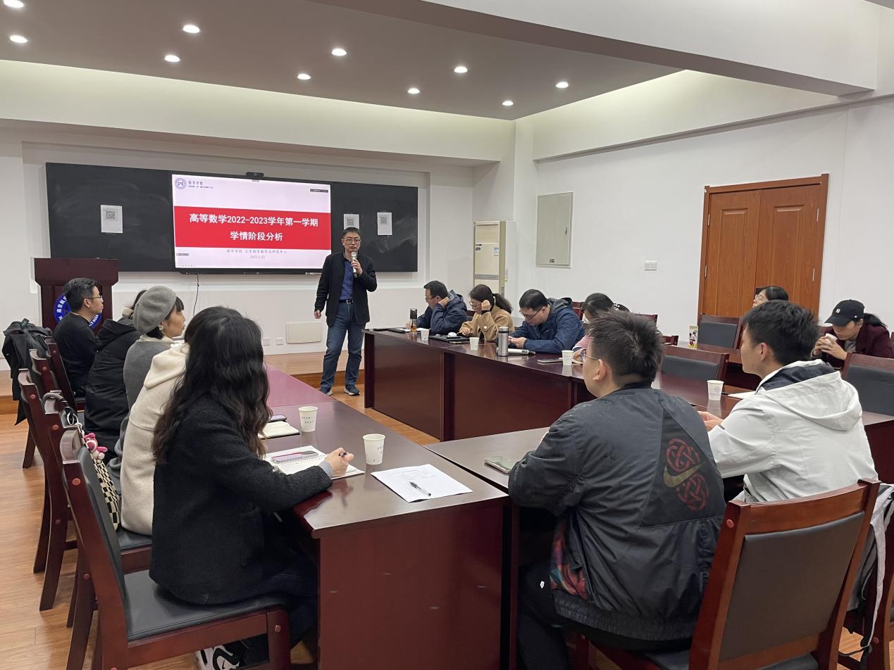为深入贯彻学校《公共基础课程教学团队建设与管理办法》,提升公共基础课程教与学的建设质量,进一步加强人才培养中心地位,2023年3月22日下午在理学楼321会议室,数学学院召开高等数学学情分析研讨会,高等数学主讲教师、相关学院教学办主任、教务老师以及大一辅导员参加会议,会议线上线下同步进行。会议由数学学院副院长蒋建林主持。