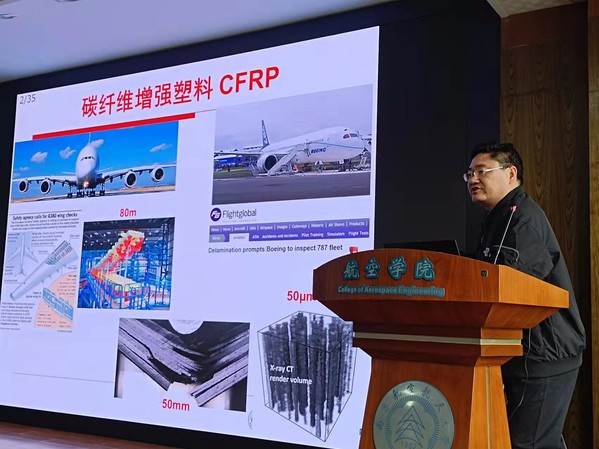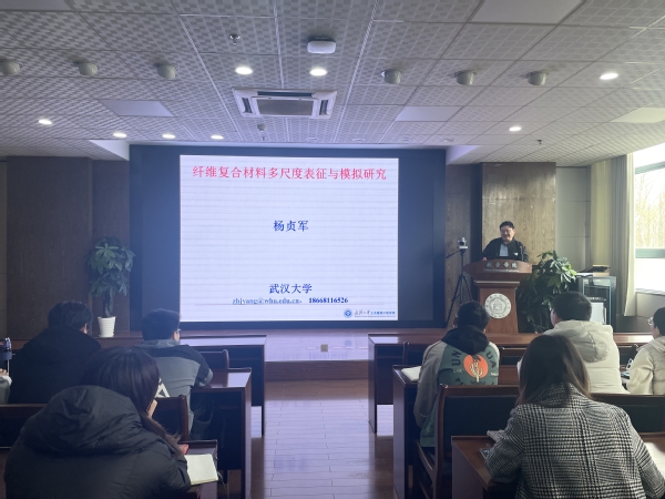 应我校航空航天结构力学及控制国家重点实验室胡克强教授的邀请,武汉大学土木建筑工程学院杨贞军教授于2023年3月24日面向我校师生做了题为“纤维复材破坏过程的多尺度实验表征与计算模拟”的学术报告。