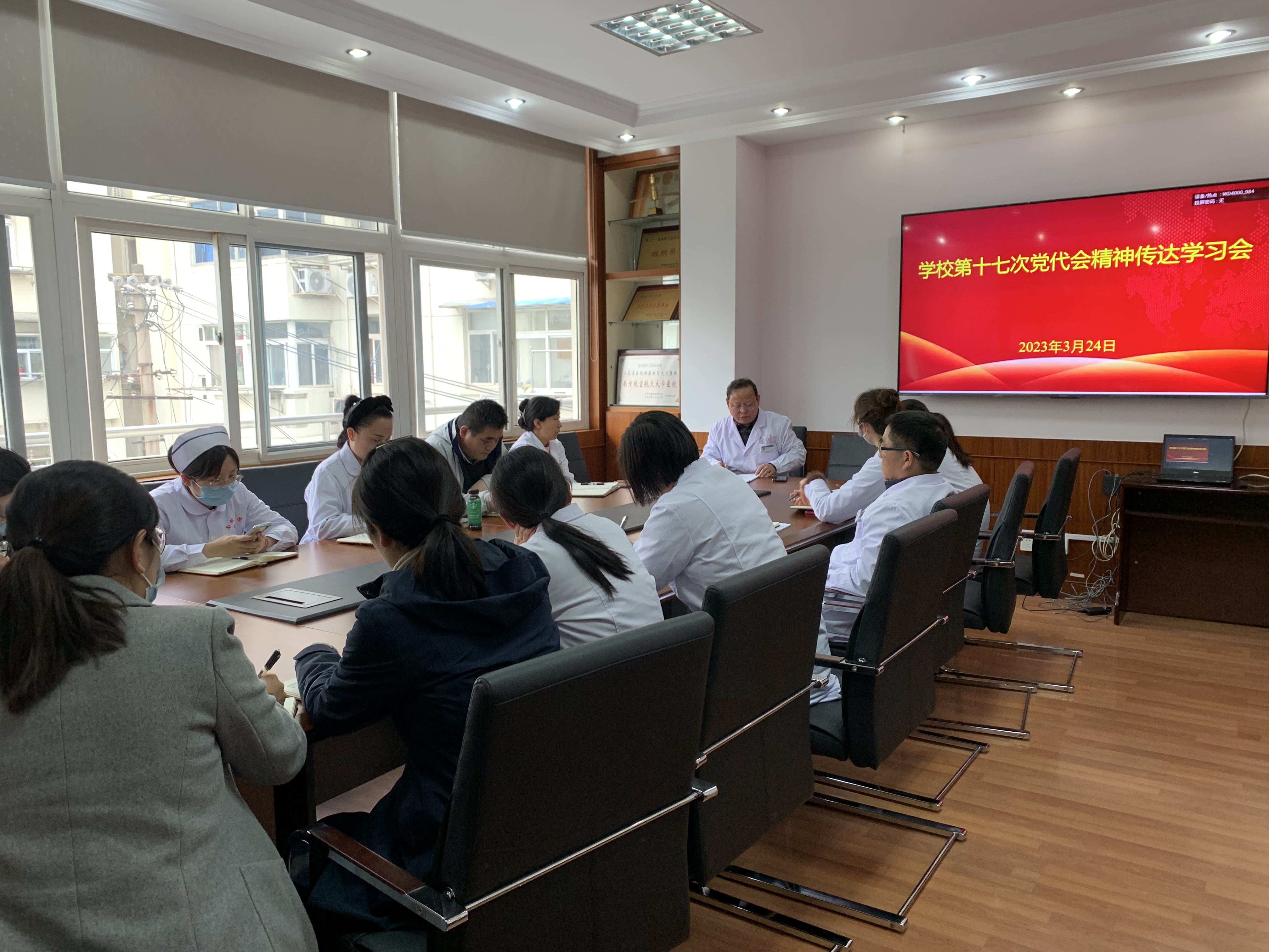 3月24日下午,校医院直属党支部召开全体党员大会,传达学习了学校第十七次党代会报告精神。会议由医院直属党支部书记刘协和主持。