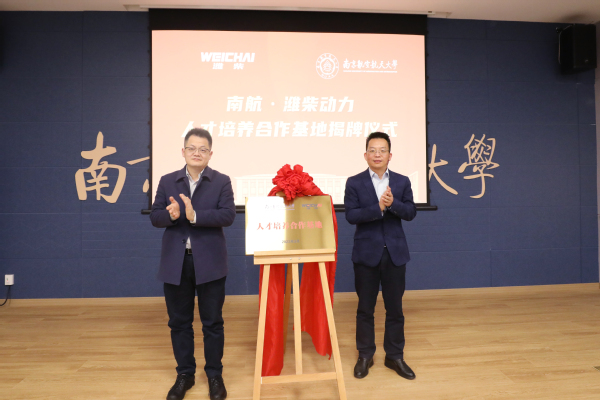 刘宇雷、马常海为南航•潍柴动力人才培养合作基地揭牌。