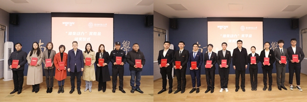 马常海、杨汉亮为“潍柴动力”奖学金、奖教金获奖代表颁奖。