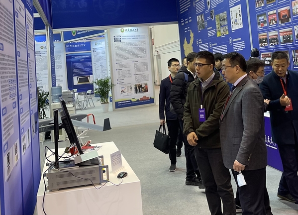 会前,许昆林和张克俭一行参观了我校科技成果展厅。展厅聚焦航空航天、电子信息、高端装备制造、新能源、新材料等领域,以实物、视频、展板等形式展示了56项科技成果。