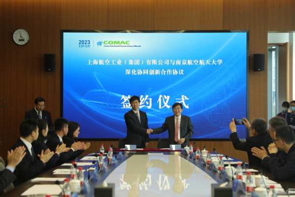 3月27日,我校与中国商飞上海航空工业(集团)有限公司(以下称“上航公司”)在中国商飞嘉兴基地签署深化协同创新合作协议。上航公司党委书记、董事长张新苗,总经理洪军,总工程师李云峰,我校副校长施大宁出席仪式。