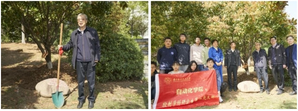 来校期间,桂卫华院士参观了自动化学院文化建设空间,并到“院士林”进行培土。