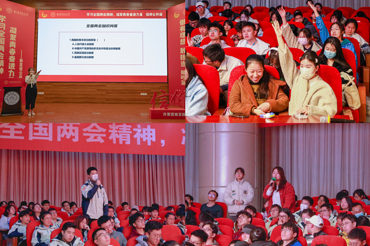 活动现场,同学们踊跃提问、积极互动,通过“两会知识问答”进一步学习巩固全国两会知识,深入领会全国两会精神。