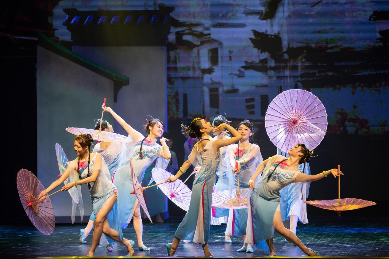 本次演出在南航原创舞蹈《逐梦云天外》中拉开序幕,之后以鸣夏、瑟秋、凛冬、融春四个篇章逐渐展开。从独舞、双人舞到数十人参演的群舞,题材丰富多样,具有丰富的故事内涵与人文情怀,引人深思,引发共鸣。最后,导师杨莉莉教授带领着三位研究生共同跳起舞蹈《茉莉花》,精彩的演出博得师生和观众们阵阵掌声。