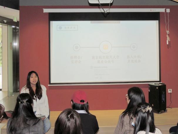 施俞辛从前段时间爆火的“孔乙己文学”入手,结合2022届毕业生就业情况,鼓励同学们树立正确的就业价值观,增强就业创业能力和职业转换能力。郭超宇在秋招中斩获多个offer,最后入职中国飞机强度研究所,他从求职准备、信息搜集、面试经历三个方面勉励学弟学妹提早规划、及早着手,不断提升自己的就业竞争力。于翌先后经历了求职、考研、考公等阶段,她通过分享不同阶段的经历和经验,强调要勇于尝试、敢于探索,在了解自己的基础上找到最合适的工作。