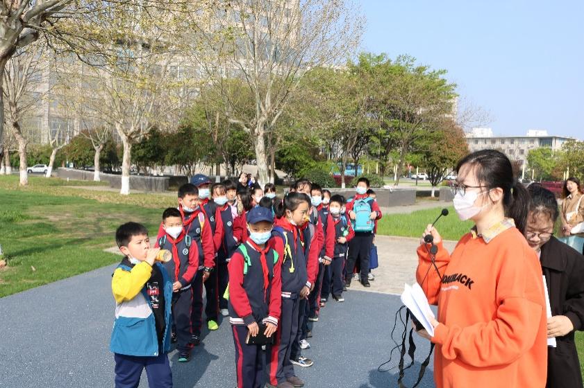 4月1日,外国语学院2022级研究生学硕团支部与南京青风志愿者服务中心、滨江外国语小学联合开展研学活动,滨江外国语学校四年级部分学生代表来我校御风园参观。