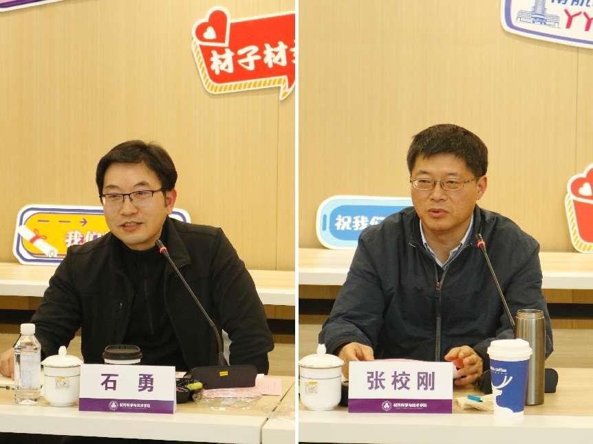 4月4日下午,材料科学与技术学院召开“材启征程 料望晴空”2023届毕业研究生代表座谈会。院党委书记石勇、院长张校刚、院党委副书记庄晓舒、副院长汤晓斌、各系相关负责同志、研究生辅导员以及硕博毕业生代表参加座谈。座谈会由汤晓斌主持。