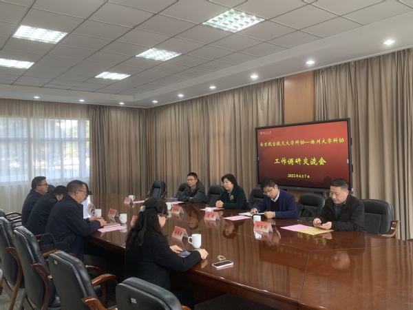 校科协秘书长冯绍红对扬州大学科协的热情接待表示衷心感谢,对扬州大学科协结合学校优势开展的特色科协工作表示肯定,并介绍了南航科协的总体情况,从学术交流、人才举荐、人才培养、科学普及、服务学会、赋能基层等方面进行了汇报。双方就新时代高校科协高质量发展的重点与举措进行了深入讨论,并期待进一步深入合作。