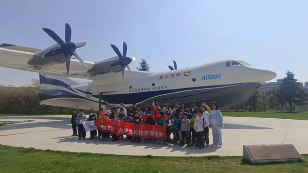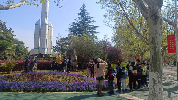 “翱翔之翼”大学生科技志愿服务团的志愿者带领孩子们领略南航校园风光,在御风园航空航天教育教学实践基地实境讲解各类航空航天器的故事,从为我国航空工业自主研发奠定基础的歼-8,到用途广泛的大国重器长征4号运载火箭,讲解员们声情并茂,有趣易懂,在普及航空航天知识的同时激发孩子们对空天的探索欲,感悟航空航天报国情怀。