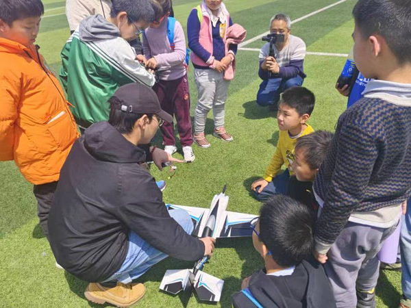 志愿者还为小朋友们带来了固定翼航模表演,并带着小朋友们亲手制作了航模。孩子们在精彩的航模表演讲解和亲手制作航模的过程中,沉浸式感受到了航空航天的乐趣和魅力,学习了科学知识,提高了动手能力。在他们热情洋溢的作品分享环节,志愿者们看到了他们对航空事业的向往与崇敬。沉浸式的科普赓续了红色基因,放飞了蓝色梦想。