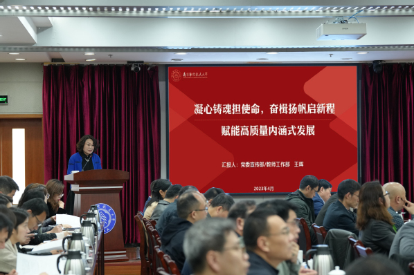 王晖作了题为《凝心铸魂担使命,奋楫扬帆启新程 赋能高质量内涵式发展》的工作报告。她从着力强化理论武装、提高思政工作质量、夯实意识形态主阵地、壮大主流思想舆论、推进文化传承创新等方面总结了过去五年的宣传思想文化工作,并围绕“标准化、系统化、数字化”三个关键词,介绍了2023年重点实施的“党的创新理论传播、意识形态固本强基、思政一体化推进、数字化赋能媒体深度融合、校园网络文化与网络文明建设”五大工程。