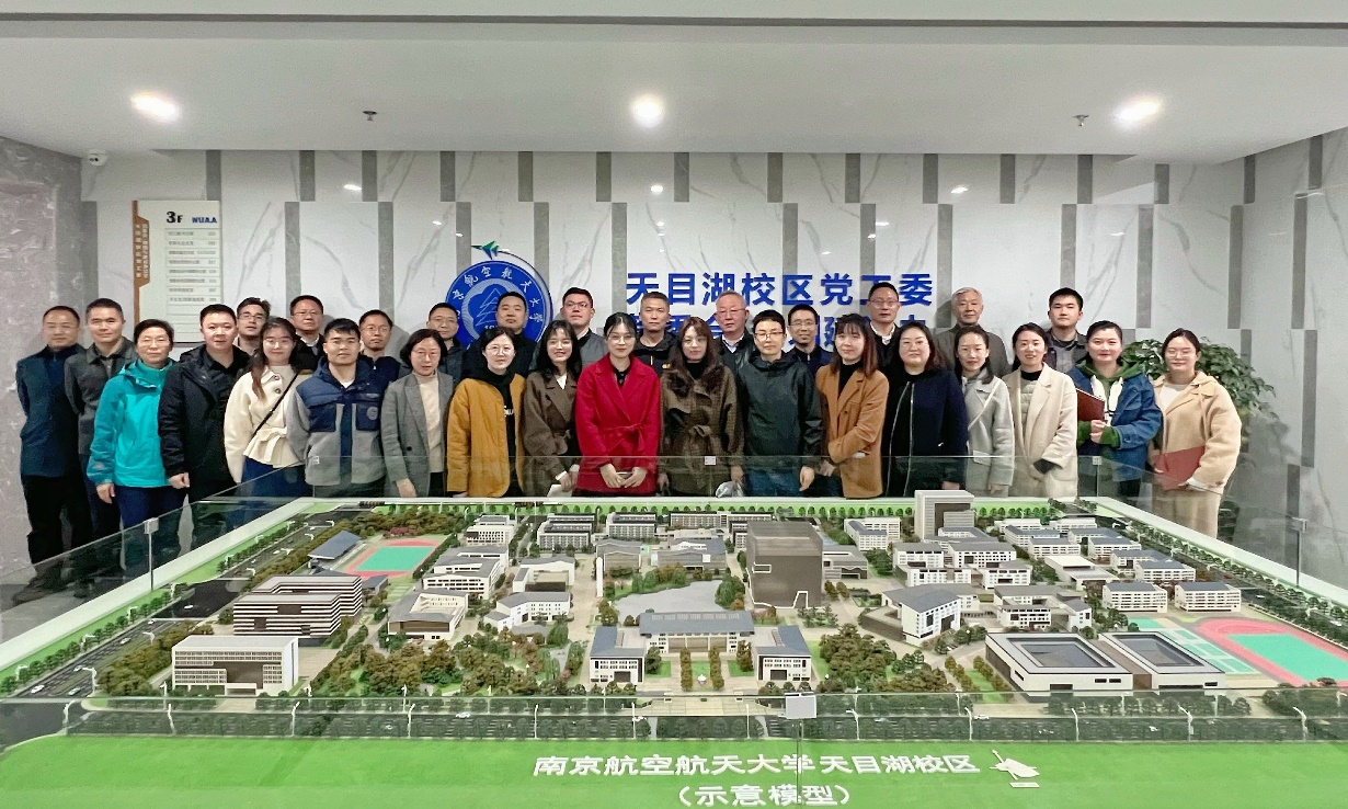 江波同志带领基建处一行参观了风洞实验室、型号飞行模拟实验室、学院楼组团、体育馆等校区特色建筑,大家更为直观、真切地感受到天目湖校区在建筑风貌、组团布局和动线设计等方面的人本理念与先进做法,参观过程中,双方还就校园建设相关技术问题进行了交流。在天目湖校区一期沙盘,天目湖校区管委会/规划与建设办公室姜开峰老师讲解了校区一期建设的整体规划和建设成效。