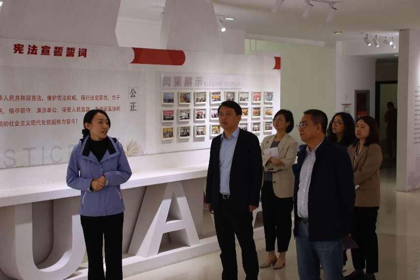 会后,调研团一行参观了学院模拟法庭、法律援助中心、校园法治文化馆等实践育人基地。