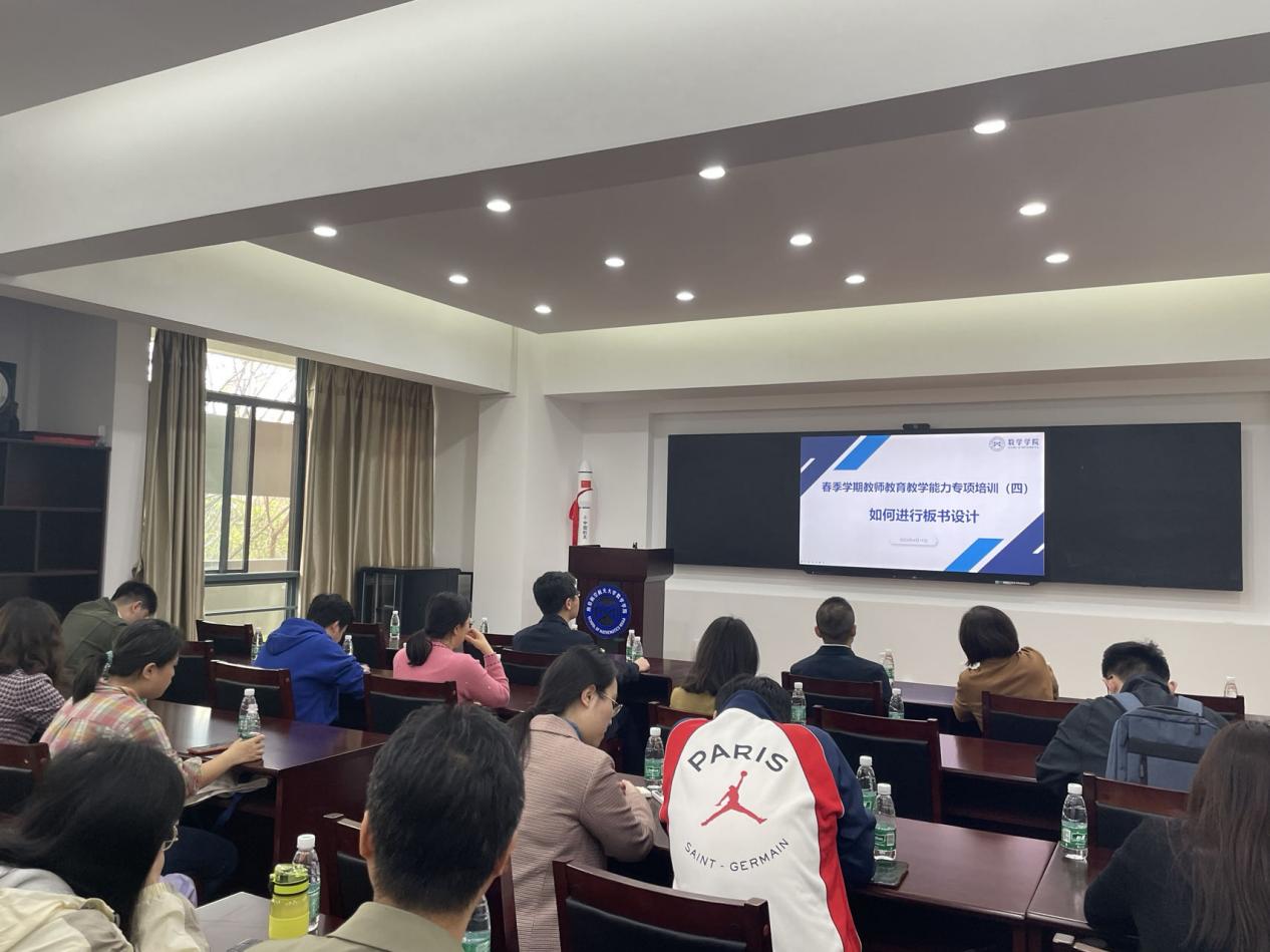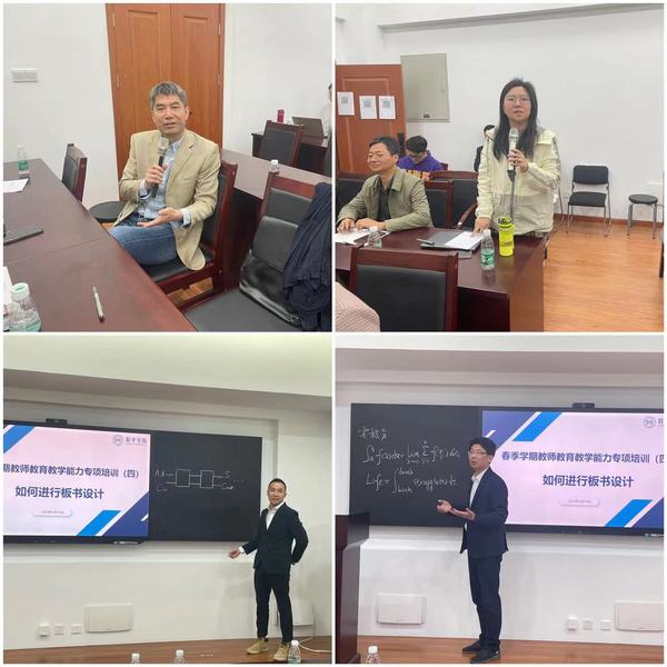 为进一步促进教师教育教学能力和课程建设质量不断提升,2023年4月14日上午,数学学院和教师发展与教学评估中心共同举办的“如何进行板书设计”专项培训讲座在数学学院321会议室举行。本次讲座邀请南京理工大学数学与统计学院孙和军副教授和电子工程与光电技术学院班恬副教授进行分享。教师发展与教学评估中心副主任杨兰芳、数学学院教学副院长蒋建林以及来自全校十六个教学单位的60多名教师参加本次讲座,讲座由蒋建林主持。