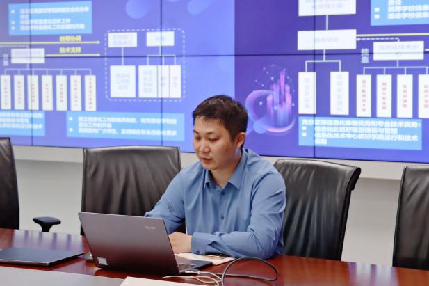 谢健详细介绍了我校信息化建设“十三五”以来取得的成果、“十四五”信息化规划以及目前进行的相关工作。随后,双方进行了深入交流,并就学生大数据、高性能计算平台、5G校园专网、人才交流、光纤互联互通、云数据中心等具体合作事项,细化具体举措,探讨合作方式。