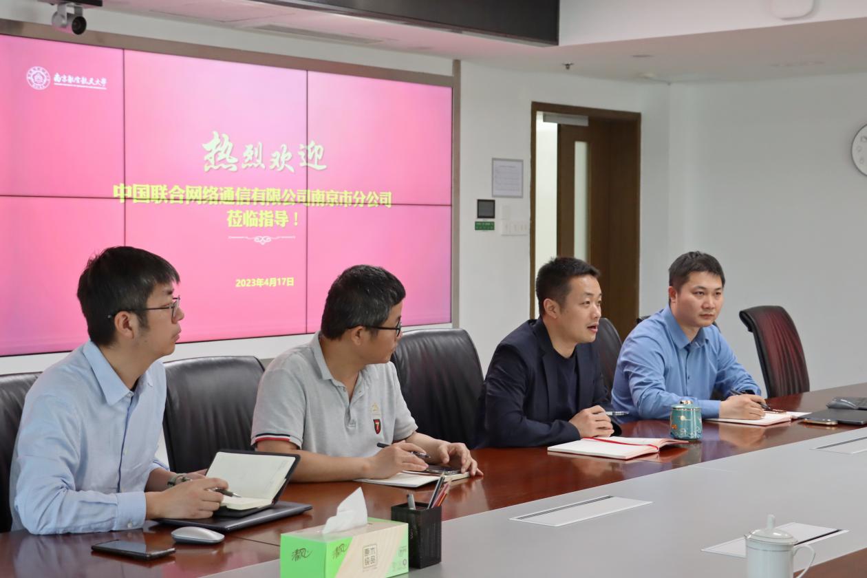 为进一步推动我校与中国联通的战略合作协议落实落细落地,加快我校信息化建设步伐,4月17日,中国联通南京市分公司党委委员、副总经理刘涛一行就战略合作协议具体事项进行了洽谈对接。中国联通南京市分公司青少年营销中心负责人吕韬,信息化处处长张焱、副处长谢健以及相关部门负责人参加会议。
