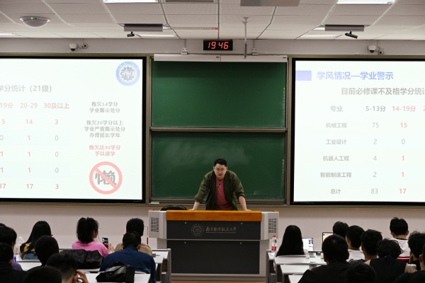 4月13日晚上,机电学院在将军路校区4201教室召开了2021级本科生年级大会,此次会议主题为“春风启新程,踔厉勇奋进”,主要包含心理健康和学风两方面内容,21级辅导员聂敏敏主持此次会议。