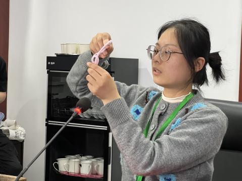 活动伊始,南京绒花非遗传承人王茜向同学们介绍了南京传统非遗文化——绒花制作技艺。她提到,绒花谐音“荣华”,寓有吉祥、祝福之意,多用于民间的民俗节事与礼仪装饰之中。2018年,南京绒花非遗传承人赵树宪先生向某大热古装电视剧剧组提供了绒花头饰,使得绒花再次引起了社会的广泛关注。她指出,非物质文化遗产是一个国家和民族历史文化成就的重要标志,是优秀传统文化的重要组成部分。中国丰富多彩的非遗文化是中华民族智慧与文明的结晶,它们走过悠久的历史,并在今天焕发出新的生机与活力。最后,大家一同体验了绒花的制作过程。