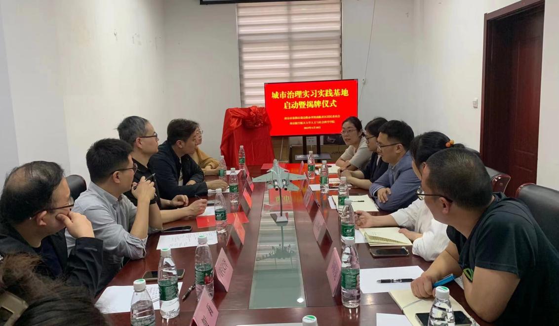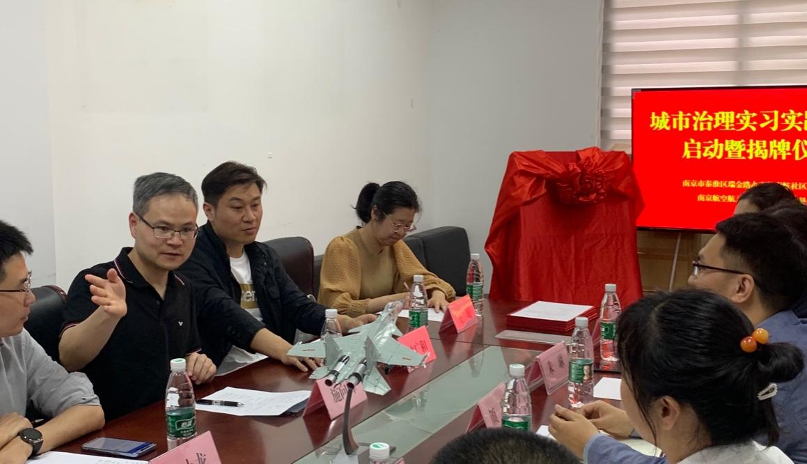 4月18日下午,大学生实习实践基地启动暨揭牌仪式在南航社区居民委员会举行。人文与社会科学学院副院长施向峰、院长助理武小龙、公共管理系主任沈广和、公共管理系党支部书记许汉泽、公共管理系教师代表王媛和贺莉,学生代表高逸菲、董若昭等,南航社区居民委员会党支部书记颜臻,社区干部王洋、吉婷婷、朱琳、卞庆亮等参加了会议。