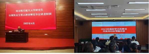 学校分层次分校区举办多场国家安全系列讲座。邀请国家安全主管部门专家面向重点人员开展国家安全知识讲座;邀请公安部门专家为师生上一堂国家安全课;开展法制安全暨反诈宣讲进校园活动,邀请公安民警围绕高校频发的网络诈骗、反邪反恐、法制安全等主题,精准开展警示教育,提升学生法律意识。