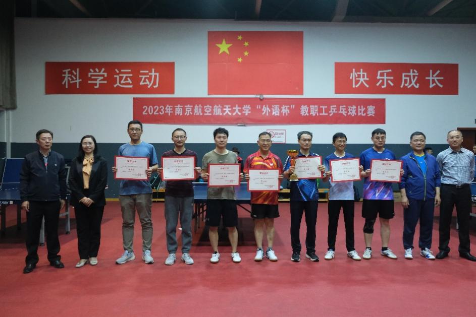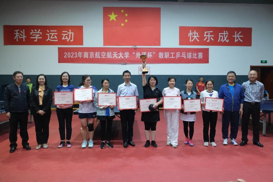 经过紧张又热烈的比拼,男女队分别产生了前八名,获得男子组前八名的是:航空学院、机关党委、外国语学院、机电学院、材料科学与技术学院、航天学院、自动化学院、电子信息工程学院;获得女子组前八名的是:机电学院、航空学院、继续教育(高等职业技术)学院、物理学院、图书馆、艺术学院、能源与动力学院、机关党委。闭幕式上,校工会常务副主席余春玲、外国语学院院长范祥涛、体育部党总支书记袁贵平、乒乓球比赛裁判长钱健为获奖代表队颁奖。